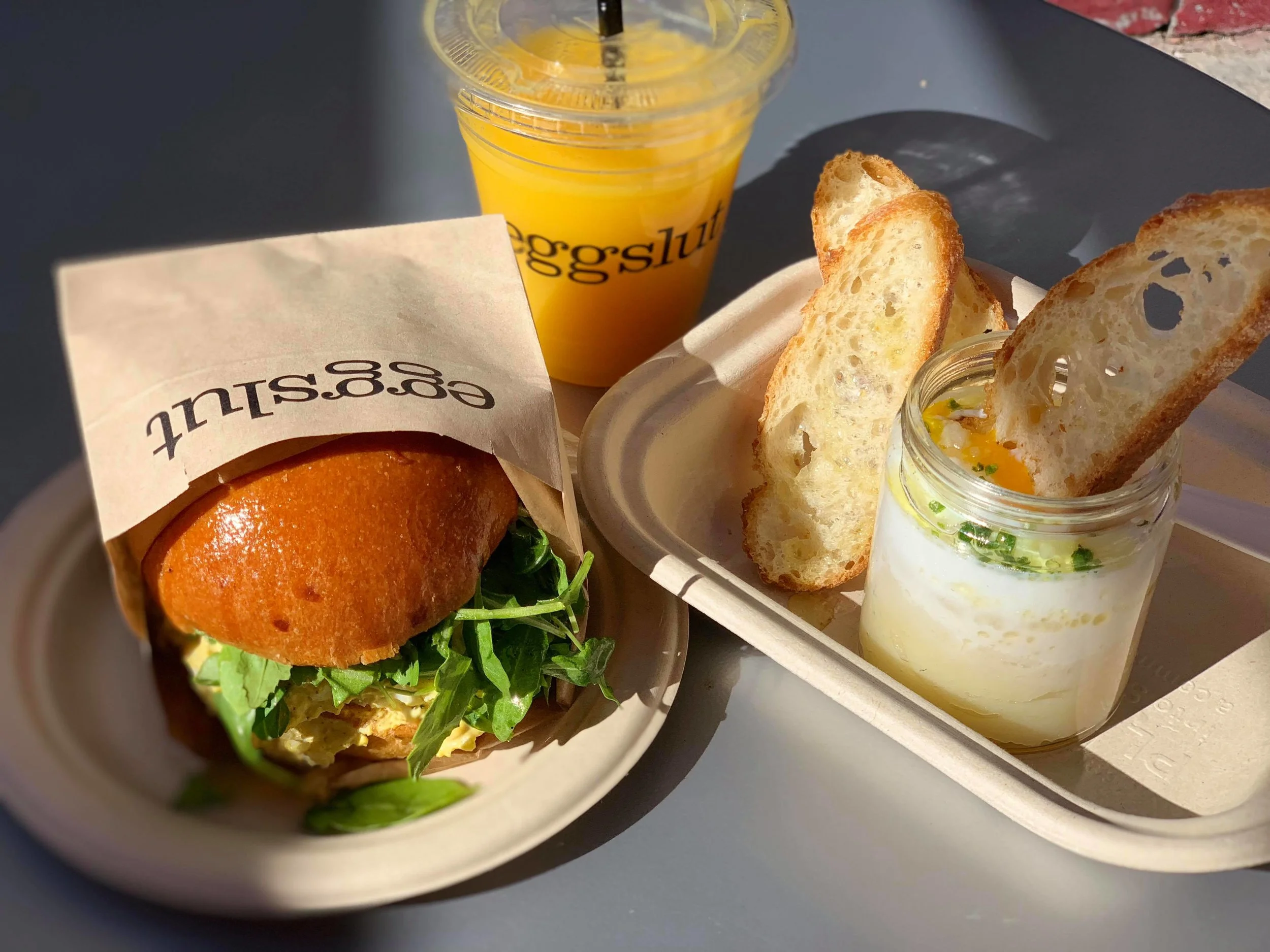 The orange juice at Eggslut was some of the best I’ve ever had, rumored to be 100% pure. Bottom left is the namesake dish the ‘slut',’ featuring a runny egg on top of potato gratin in a jar, with crispy baguette to dip. Left, egg-salad sandwich, also some of the best I’ve had. Needless to say, the restaurant knows its eggs.